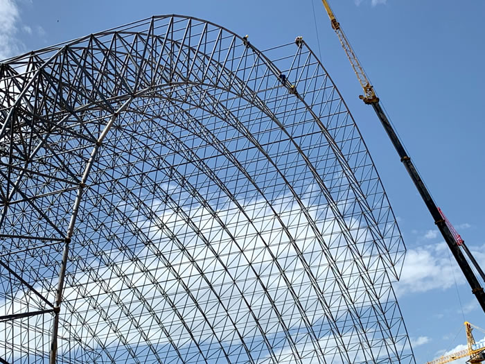 (2)网架加工前应对现场尺寸进行复测,确认无误后方可进行加工、安装;网架制作、运输、安装应遵守《空间网格结构技术规程》JGJ7-2010、《钢网架山南螺栓球节点》JG/T 10-2009、《钢网架山南螺栓球节点用高强度螺栓》 GB/T 16939-2016、《山南钢结构山南工程山南施工规范》 GB50755-2012、《山南钢结构山南工程山南施工质量验收标准》 GB50205-2020。